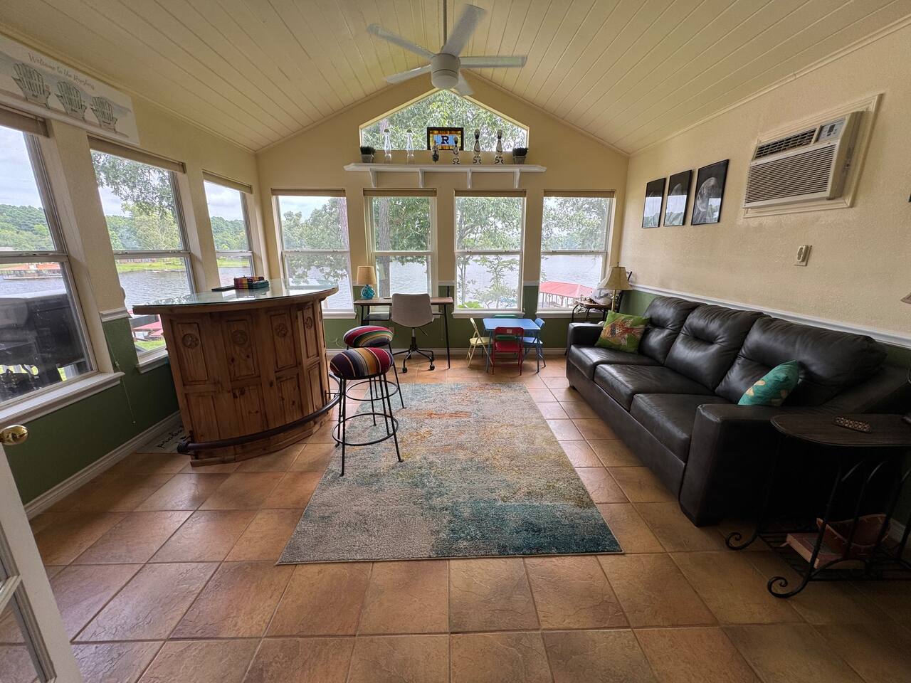 Kitchen is fully stocked with all the pots, pans, dishware, and cleaning supplies you may need. The lakehouse is also kid-friendly with toys located in the sunroom and an extra playpen located in the guest bedroom closet.