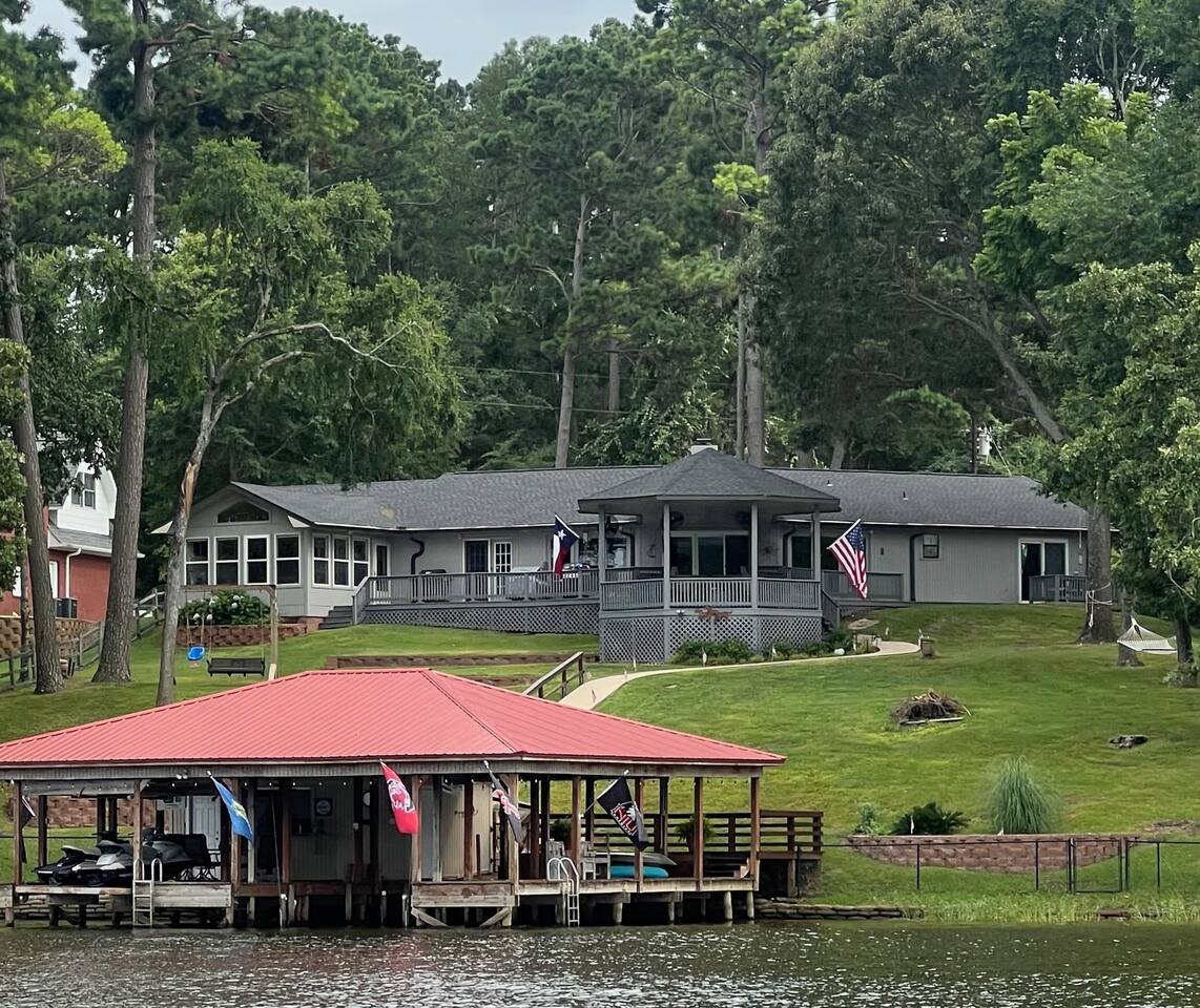 Welcome to a perfect getaway at this charming 4-bedroom, 3-bath lake house tucked away on a peaceful cove on Lake Palestine. This home-away-from-home features an oversized balcony and newly remodeled gazebo, perfect for entertaining. The home is named in honor of the owner, whose initials are DR, reflect the care and vision that helped shape this special lakeside escape. Come enjoy kayaking, swimming, paddle boarding, fishing, or relaxing watching the sunset from the dock of the bay.